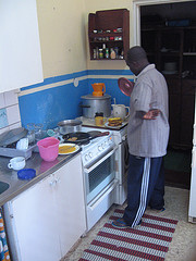 When we are in Burundi, we cook for ourselves. Paul is preparing tea, Nate is making french toast for a breakfast.