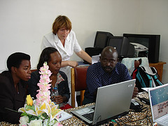 I got up with singing downstairs. Robina is gone to Kigalie with the team. Joseph and Skovia were leading the devotion this morning. Almost the same number of people came. I had breakfast with Skovia, then went to school. One lady made a prayer request that she will go to see her sick father near Burundi. I gave her 5000 franks for her transport. I asked Frank to bring my backpack, I walked to school. It takes only 10 minutes from home to school. When I got there, there were several professors were waiting. We met at the ICT room, they called it a smart room. We used Photo Story 3 to put together a story. There were four groups, and I sent them out to take p for the door to be opened. Today, we will start DST workshop. Some of them already has a digital camera. Chalres’ team worked on NUR research projects, Joanne worked alone on an introduction to NUR, and Elena’s group worked on beautiful scenery of NUR campus.