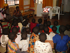 Children watching a slideshow on my laptop computer