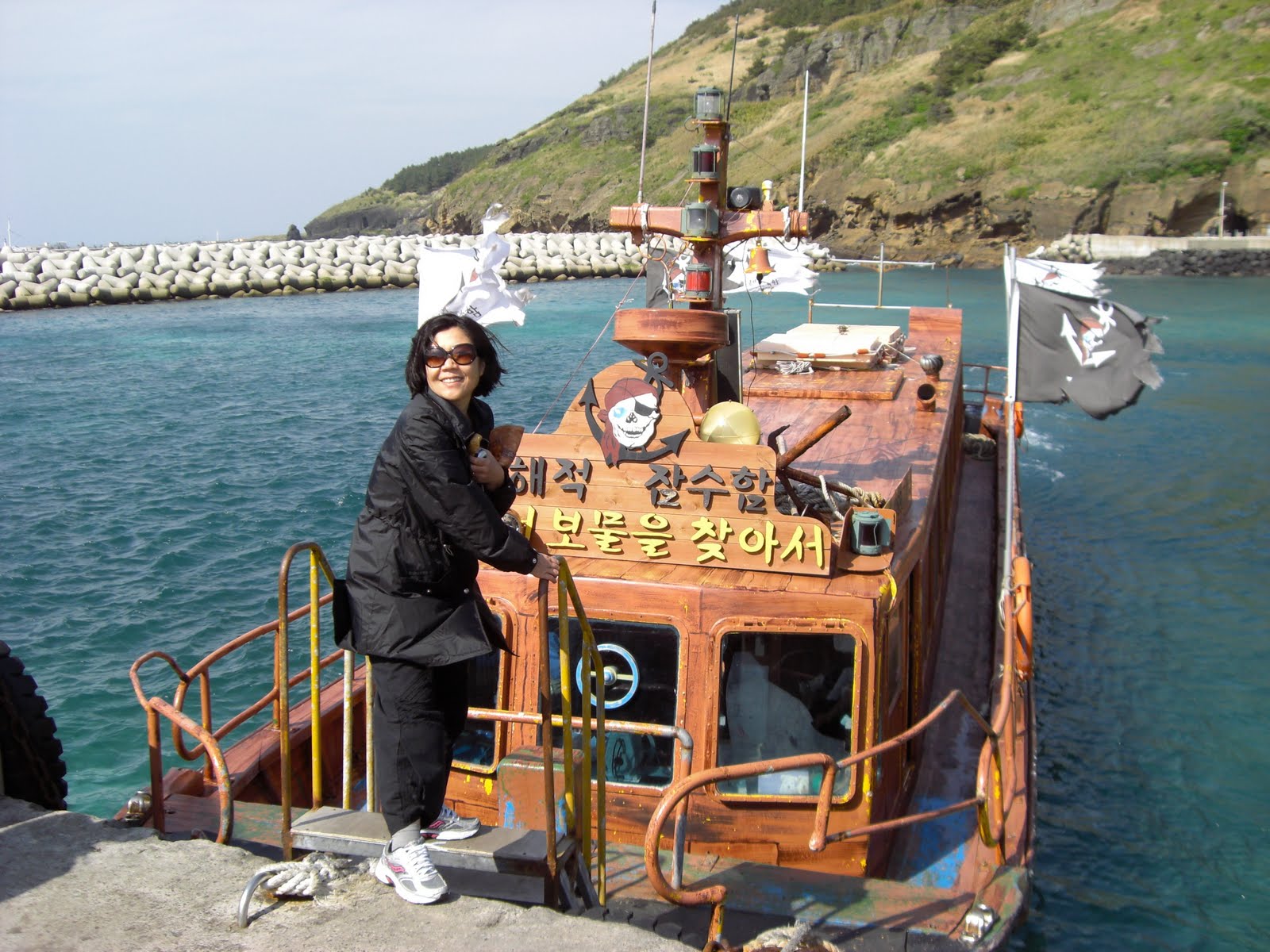 I can’t believe it is already the 4th day of my travel. Now I am in Jeju Island. We were separated from our tour group due to the airline schedule changes. We arrived at Jeju airport at 3 p.m, and the tour guide took us to Goblin road, according to a folklore, the car drives on its own. The folklore tells a story about a taxi driver who dropped a passenger at a remote village on a late night. On his way back home, he stopped to take care of a nature’s call at a spot on this road. In the corner of his eyes, he saw his car was driven away. He was convinced that he saw a ghost drove his car. Since then this road is called Goblin Road. Our tour driver demonstrates it to us, the car moved for a few yards on its own. The road seemed to me slightly uphill, and yet our car was moving forward toward uphill on its own. I don’t know what this is all about, but Jeju tour companies need to have tourist spots like this to bring more tourists from the mainland KoreaWe sat in a row facing the windows, and looked outside. A man wearing his gear was luring fish with food, and all kind of tiny fish was following him around. The guide told us that the big fish are scared of people, but little ones are not afraid of. They are like humans. We learn helplessness and fearfulness, as we get older. Then we went to the deeper place and saw all kinds of underworld plants and corals. I saw flowers, trees, and vegetations under the water.