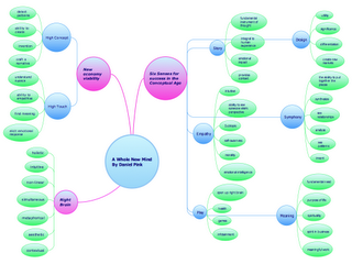 We are reading A Whole New Mind by Daniel Pink this week in ITEC 830. Here is a great example who uses his right brain to summarize the book. This chart is created by Kurt Willig in ITEC 830 class. -- I thought the chart illustrates the key concepts of the book so well that I decide to post here to keep the chart for the future classess and also to recommend the book to others. If you have not read Pink's book, it is easy read and there are many great ideas for ID people to consider as we design learning environments for digital age learners.